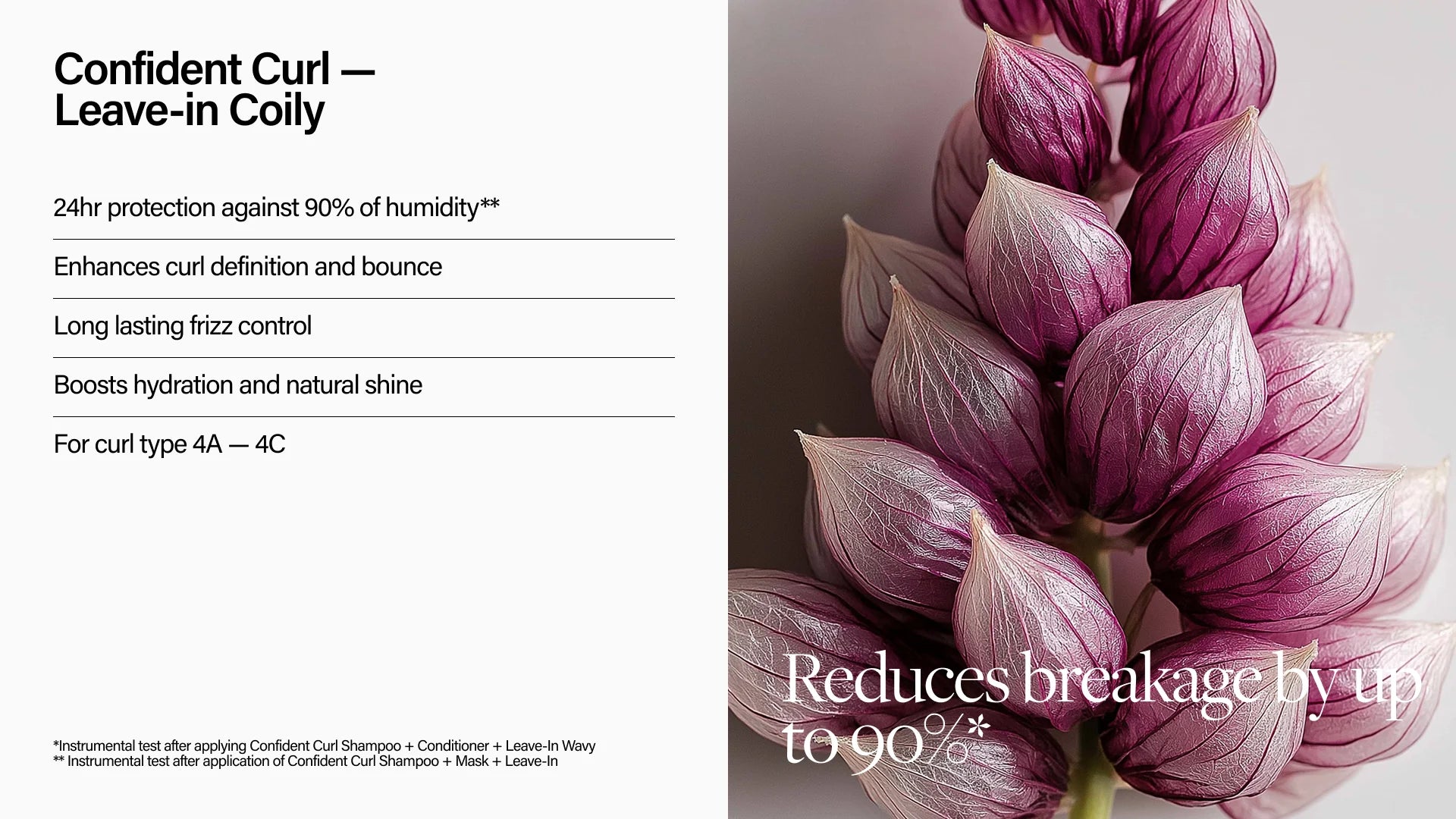 Enhance your natural coily texture with Confident Curl Leave-in Coily, a rich no rinse cream giving intense nourishment, protection and defined shape.